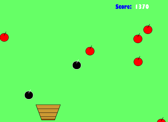 Move your mouse left or right to navigate the basket on the screen to collect the dropping apples. Collect the red and golden apples to score points while avoiding the black apples.