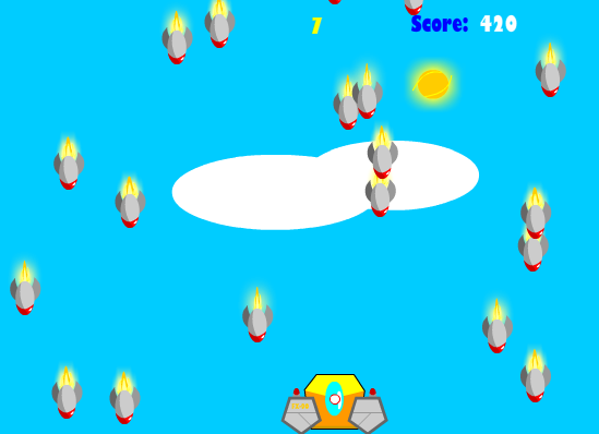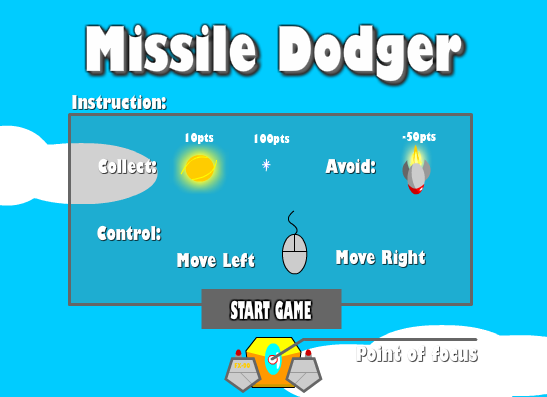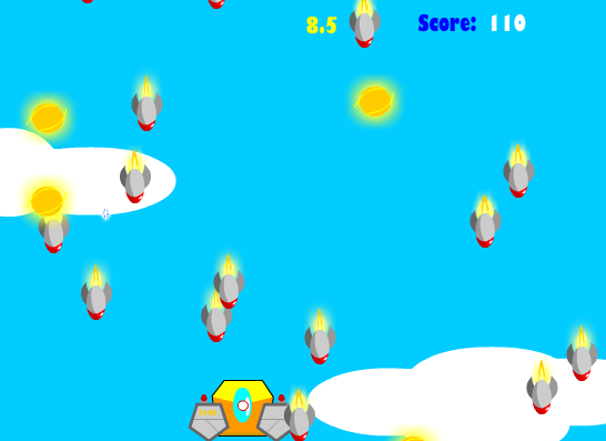 Move your mouse left or right to navigate the ship on the screen to dodge incoming missiles and to collect energy orbs and crystals. Getting hit by missiles will result in a score deduction.